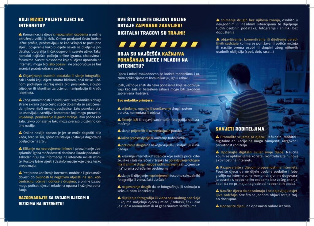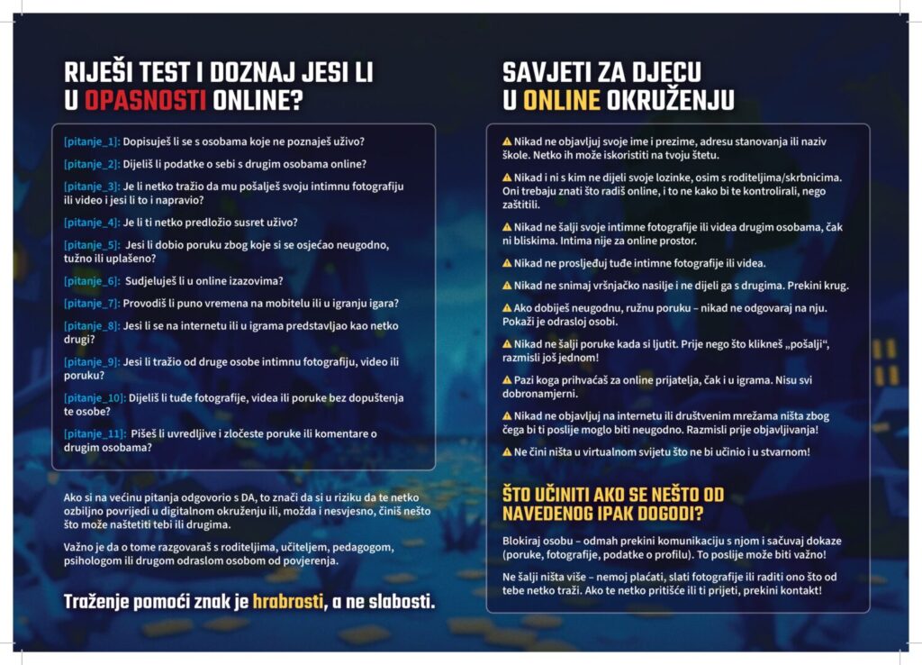 U sklopu preventivnog projekta #sigurniONLINE, koji provodi Ministarstvo unutarnjih poslova uz podršku Ministarstva znanosti, obrazovanja i mladih, objavljujemo informativne materijale namijenjene učenicima i roditeljima.